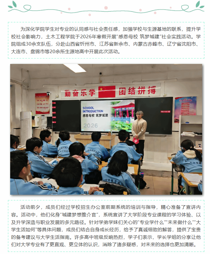 感恩母校(二)土木工程学院开展“感恩母校,筑梦城建”社会实践活动