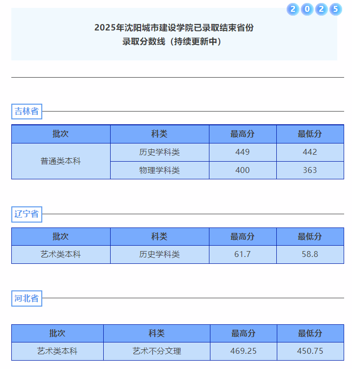 沈阳城市建设学院2025年招生录取进程(7月16日)