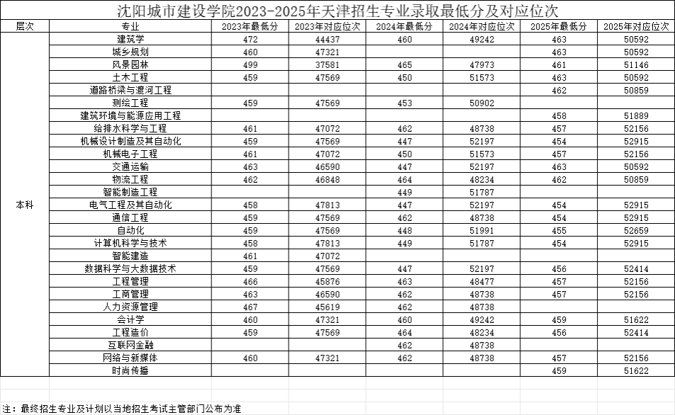 天津2023-2025年招生专业录取最低分数线及对应位次