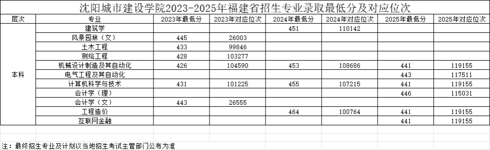 福建2023-2025年招生专业录取最低分数线及对应位次