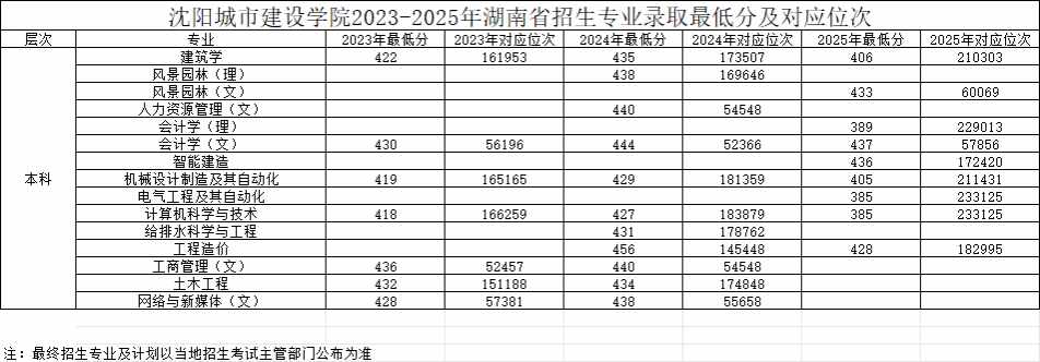 湖南2023-2025年招生专业录取最低分数线及对应位次