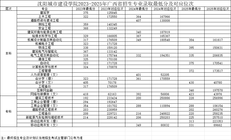 广西2023-2025年招生专业录取最低分数线及对应位次