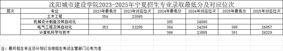 宁夏2023-2025年招生专业录取最低分数线及对应位次